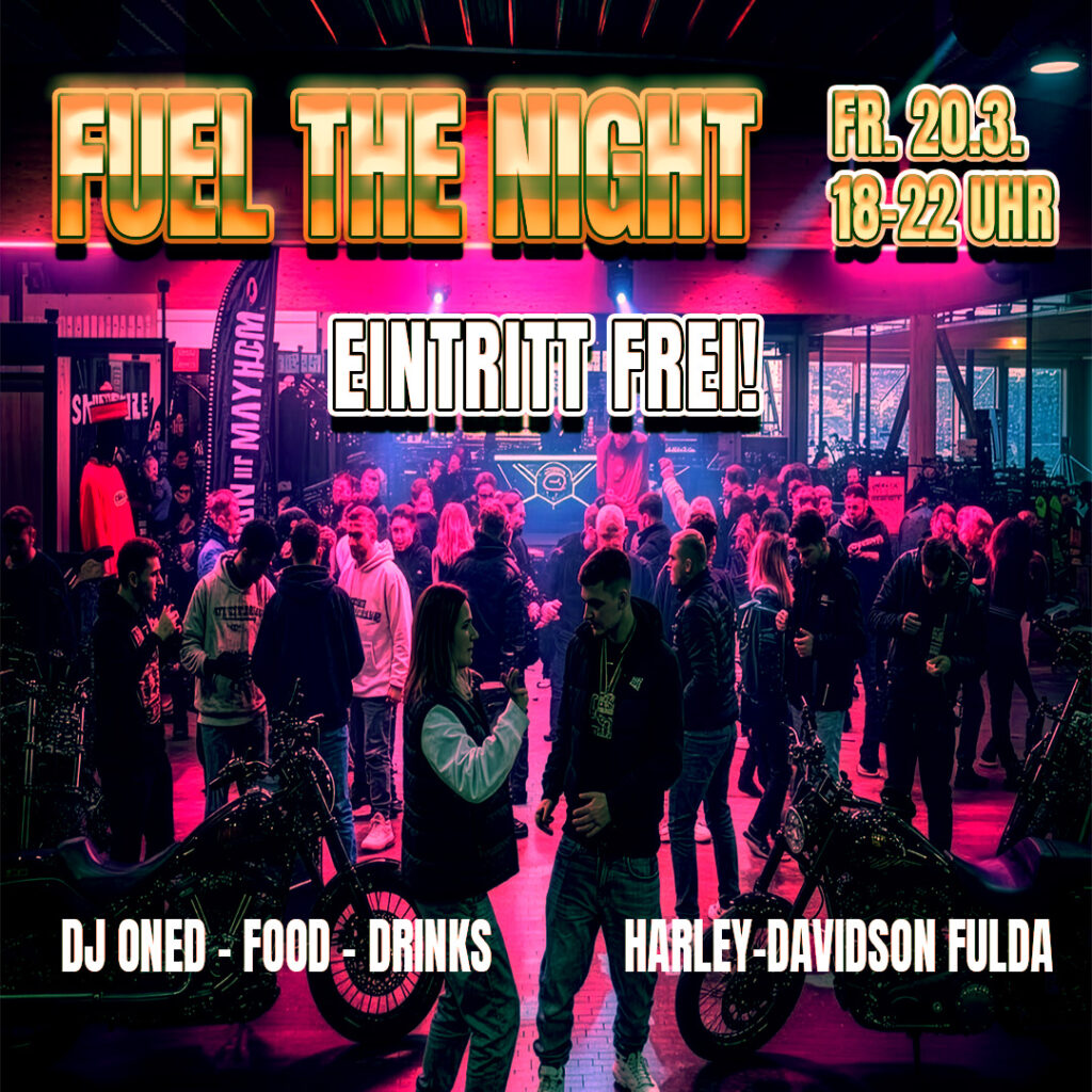 Fuel the Night – Partytime bei Harley Fulda FUEL THE NIGHT – 20.03.2026 | 18–22 UHR Die Nacht gehört dir – und wir machen sie unvergesslich! Ob After-Work-Abenteuer, perfekter Weekend-Start oder echtes Biker-Feeling: Bei der Fuel the Night im Harley-Davidson Fulda erlebst du eine Nacht voller Energie, guter Musik und echter Leidenschaft. Das Programm: Lass…